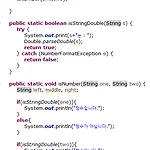 문자열이 정수인지 판별해야하는 작업이 은근히 많다. 이방법을 쓰면 간단하다. 복사는 밑에있어요. public class isNumber { public static void main(String[] args) { String one = "101010"; String two = "ㄱㄴ10ab"; isNumber(one,two); } public static boolean isStringDouble(String s) { try { System.out.print(s+"는 : "); Double.parseDouble(s); return true; } catch (NumberFormatException e) { return false; } } public static void isNumber(String one,..